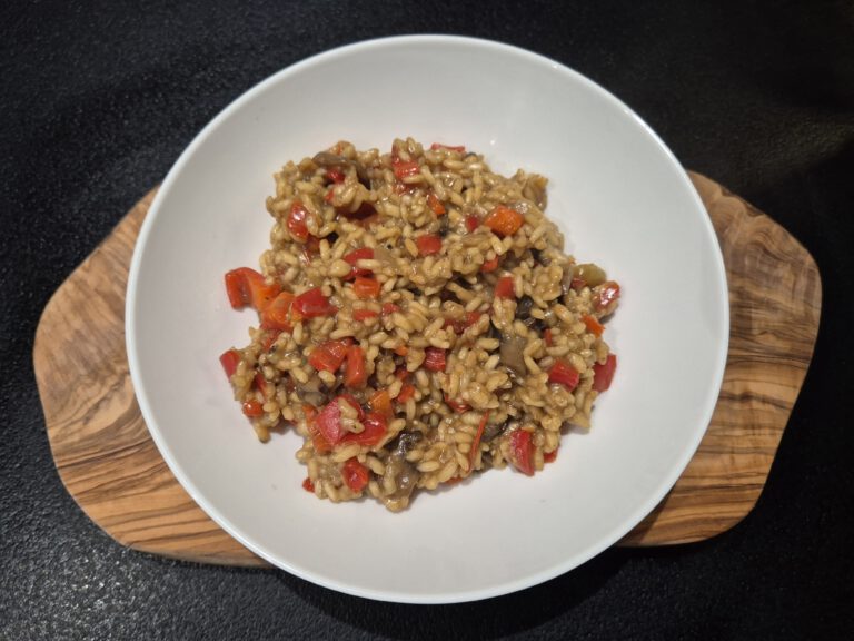 Romige risotto met champignons en paprika – zonder gedoe, boordevol groente